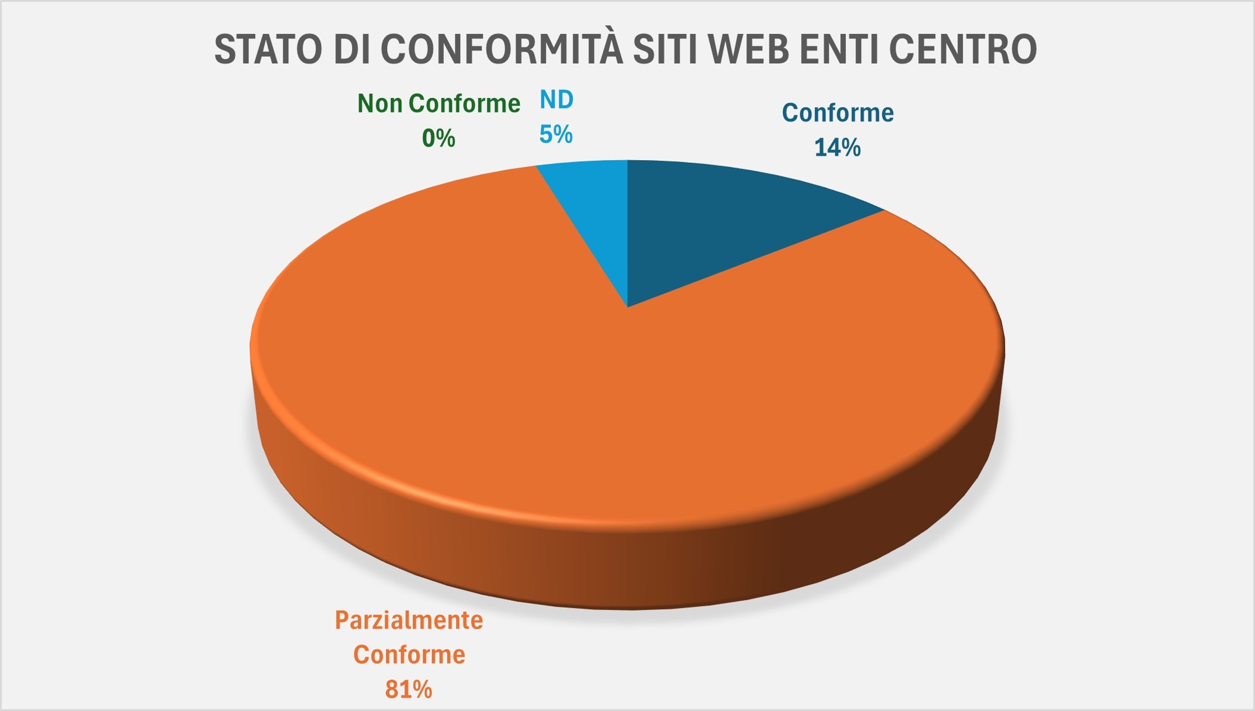 Lo stato di conformità alla normativa è determinato dal rispetto dei requisiti previsti dalle "Linee Guida per l'accessibilità dei contenuti Web (WCAG) 2.1", e si suddivide in tre categorie: